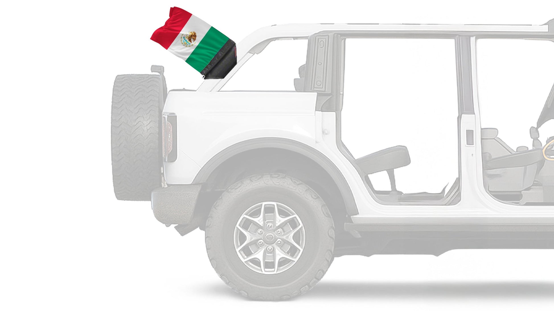 Show your style on every ride with the Mexico 12"x18" Forever Wave Flag for Bronco, proudly Made in the USA and designed to work exclusively with the Forever Wave interchangeable Flag for Bronco sleeve system. Built from premium, UV-resistant polyester, this durable double-sided Flag for Bronco is engineered to withstand sun, wind, rain, and off-road conditions while maintaining bold, vibrant color.