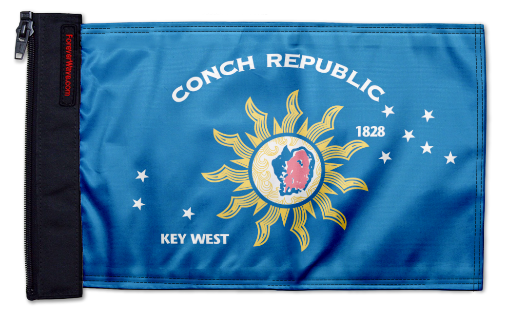 Show your style on every ride with the Conch Republic 12"x18" Forever Wave Flag for Golf Carts, proudly Made in the USA and designed to work exclusively with the Forever Wave interchangeable flag sleeve system. Built from premium, UV-resistant polyester, this durable double-sided flag is engineered to withstand sun, wind, rain, and off-road conditions while maintaining bold, vibrant color.