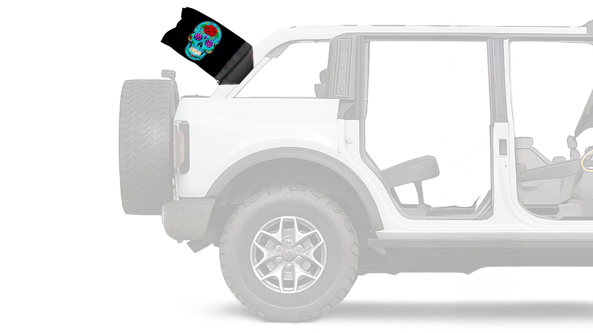 Show your style on every ride with the Sugar Skull 12"x18" Forever Wave Flag for Bronco, proudly Made in the USA and designed to work exclusively with the Forever Wave interchangeable Flag for Bronco sleeve system. Built from premium, UV-resistant polyester, this durable double-sided Flag for Bronco is engineered to withstand sun, wind, rain, and off-road conditions while maintaining bold, vibrant color.