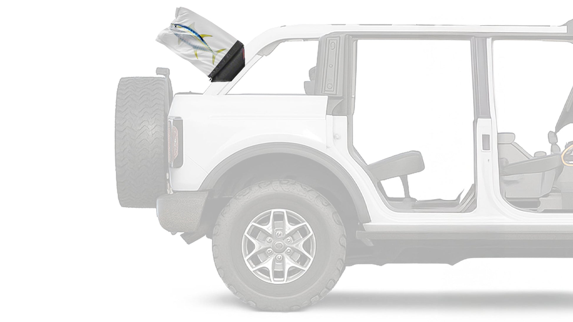 Show your style on every ride with the Tuna 12"x18" Forever Wave Flag for Bronco, proudly Made in the USA and designed to work exclusively with the Forever Wave interchangeable Flag for Bronco sleeve system. Built from premium, UV-resistant polyester, this durable double-sided Flag for Bronco is engineered to withstand sun, wind, rain, and off-road conditions while maintaining bold, vibrant color.