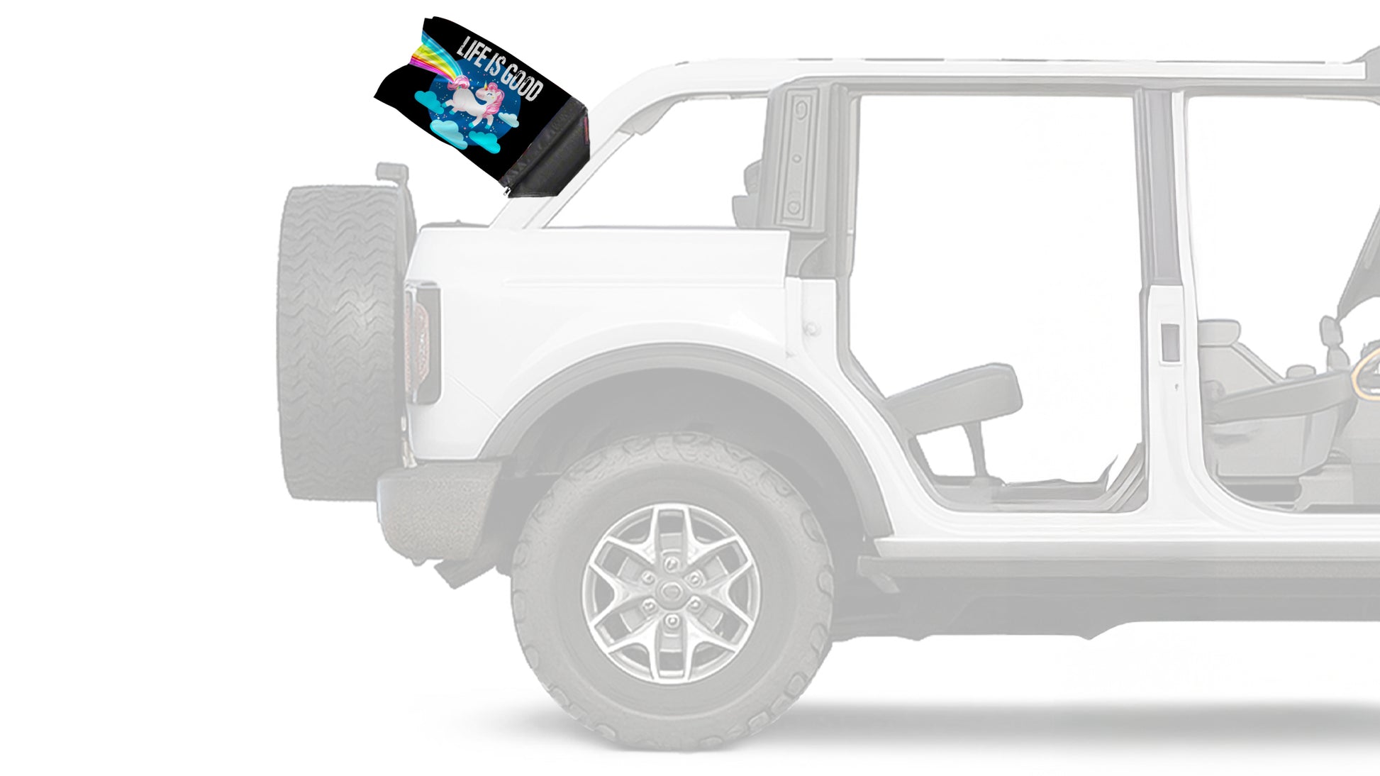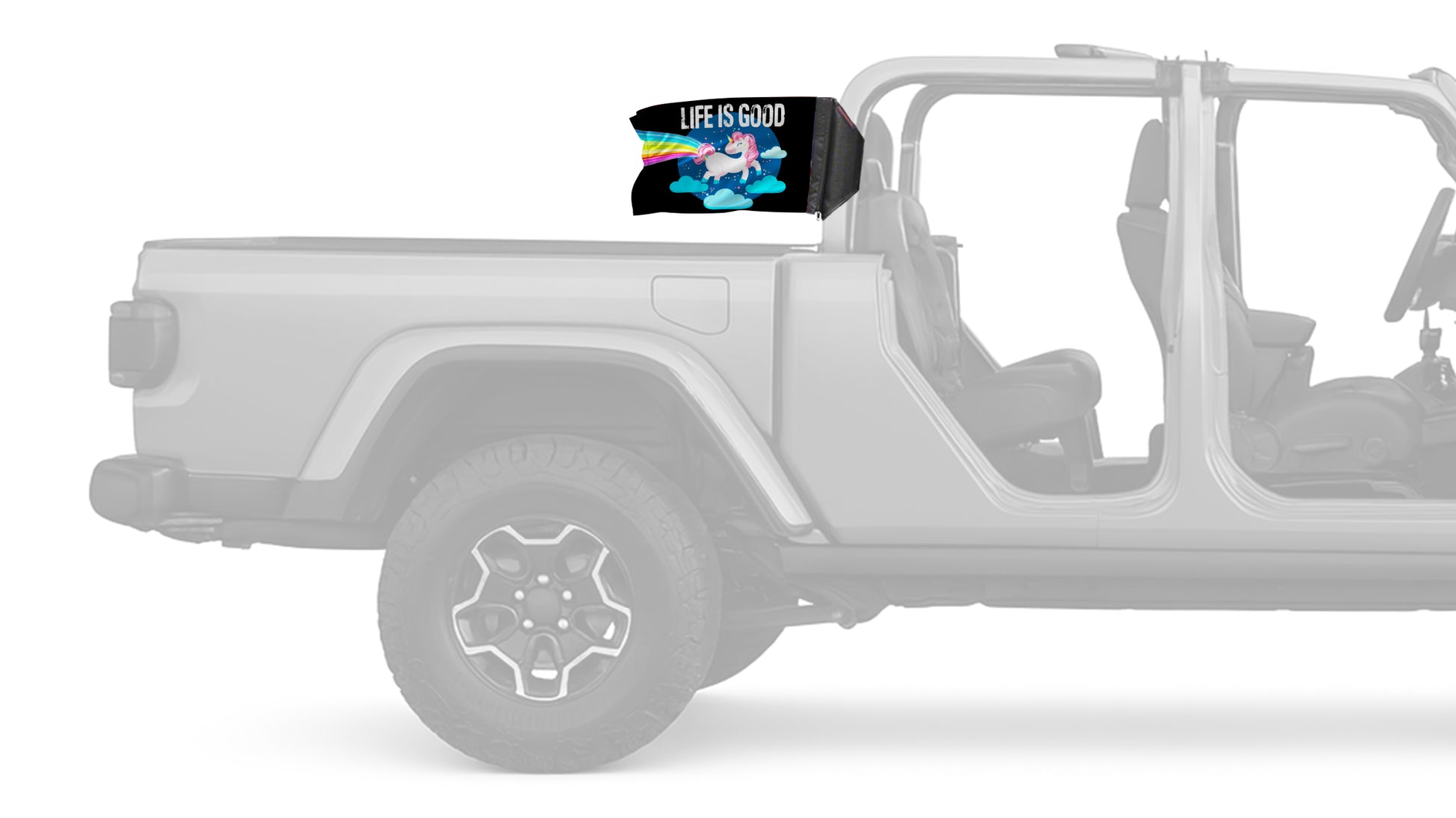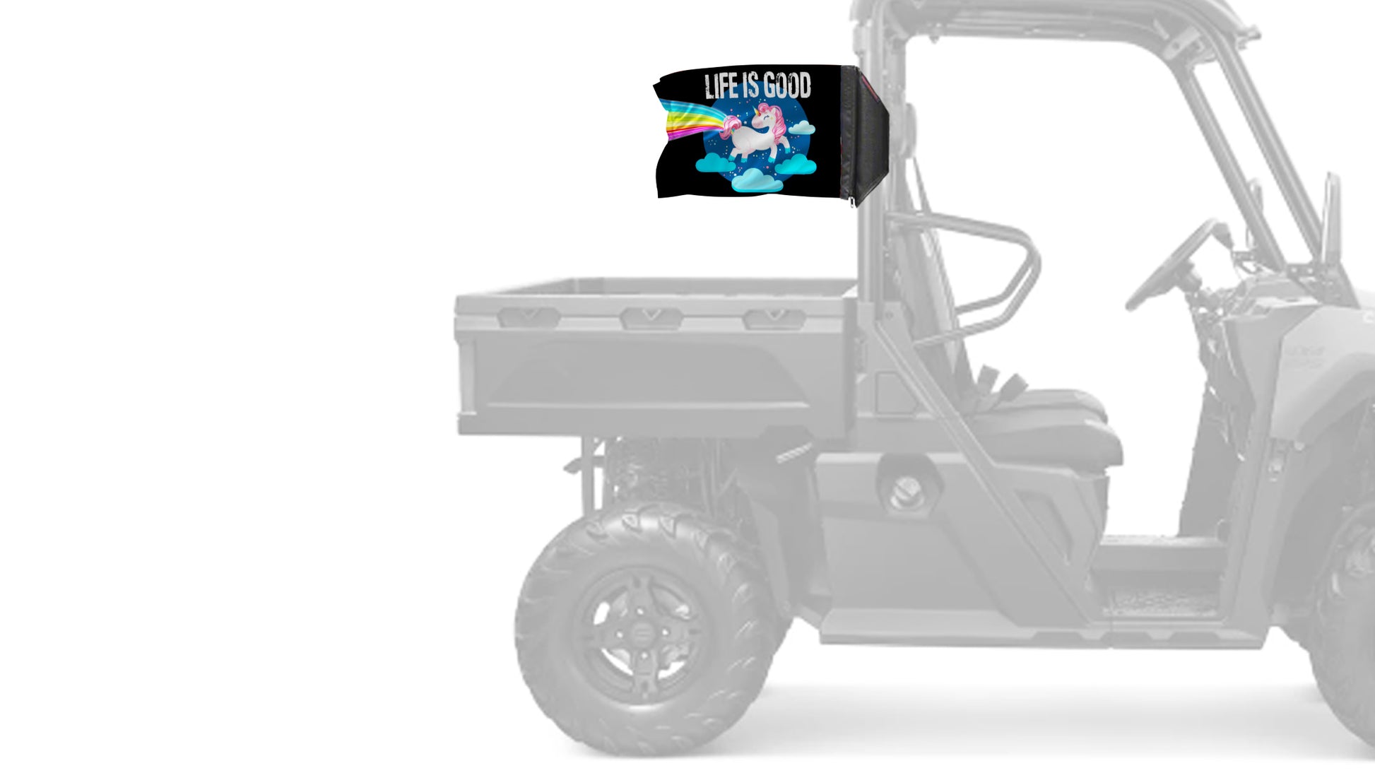 Show your style on every ride with the Life Is Good Unicorn 12"x18" Forever Wave Flag, proudly Made in the USA and designed to work exclusively with the Forever Wave interchangeable flag sleeve system. Built from premium, UV-resistant polyester, this durable double-sided flag is engineered to withstand sun, wind, rain, and off-road conditions while maintaining bold, vibrant color.