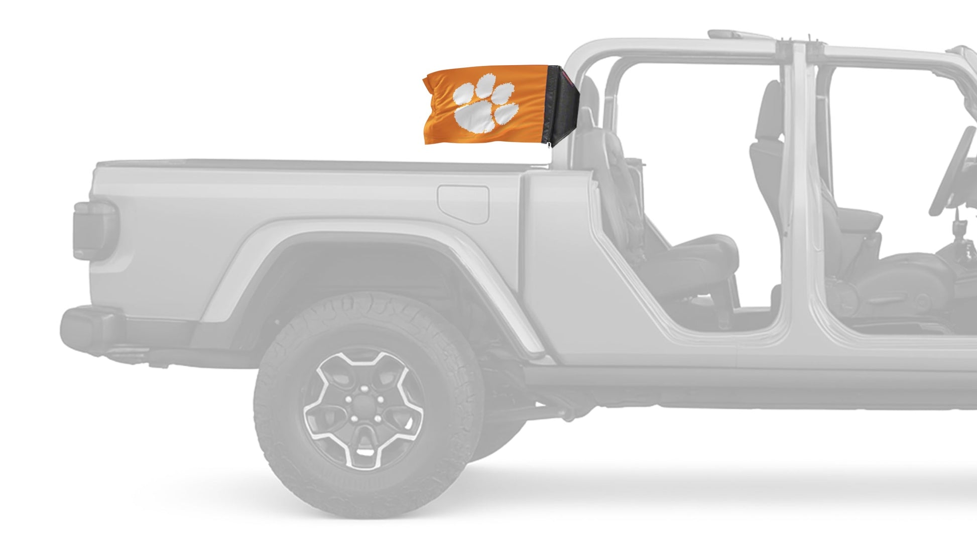 Show your style on every ride with the Clemson 11"x17" Forever Wave Flag for Jeep Gladiator JT, proudly Made in the USA and designed to work exclusively with the Forever Wave interchangeable flag sleeve system. Built from premium, UV-resistant polyester, this durable double-sided flag is engineered to withstand sun, wind, rain, and off-road conditions while maintaining bold, vibrant color.