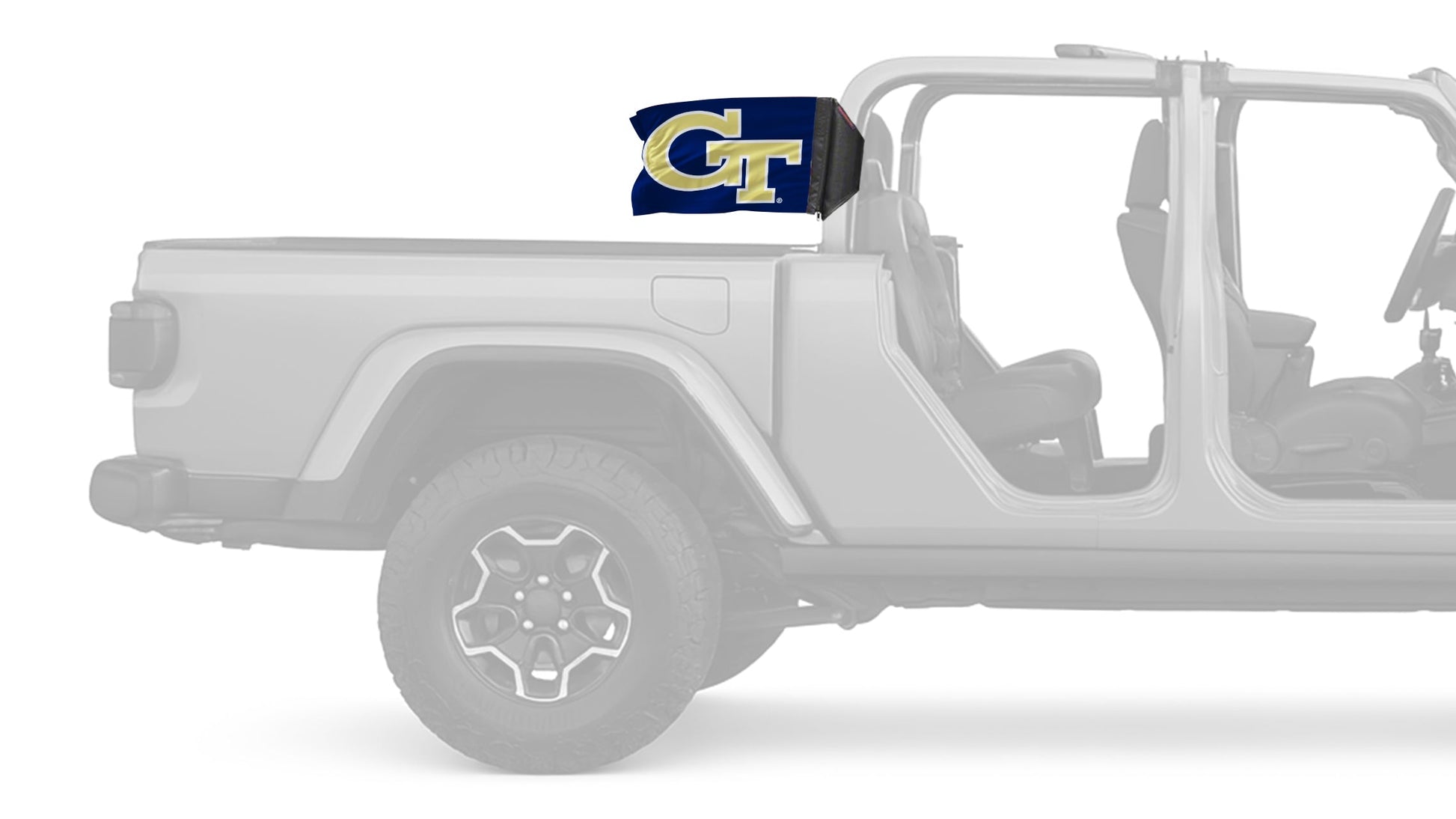Show your style on every ride with the Georgia Tech 11"x17" Forever Wave Flag for Jeep Gladiator JT, proudly Made in the USA and designed to work exclusively with the Forever Wave interchangeable flag sleeve system. Built from premium, UV-resistant polyester, this durable double-sided flag is engineered to withstand sun, wind, rain, and off-road conditions while maintaining bold, vibrant color.
