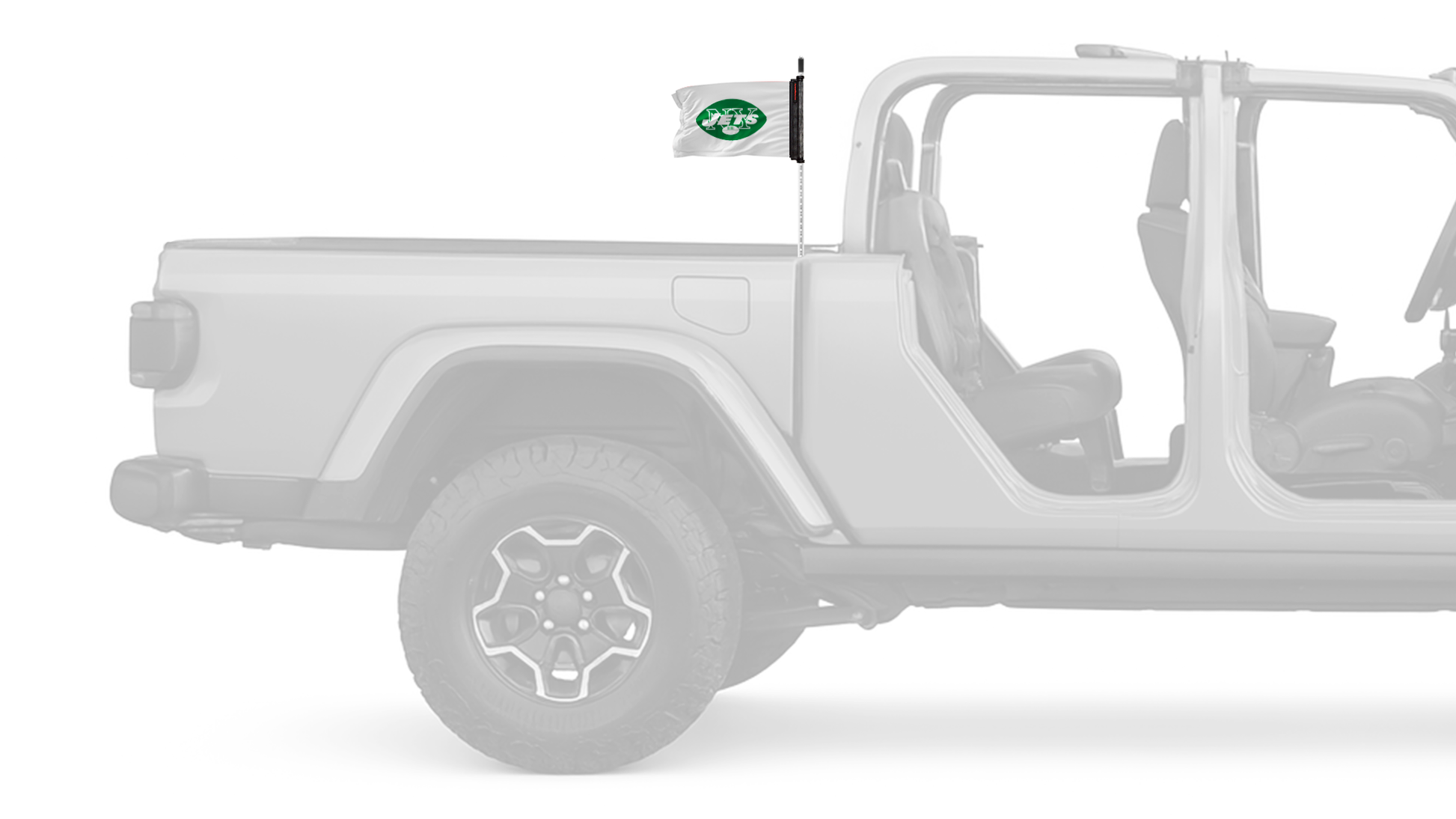 Show your style on every ride with the New York Jets 11"x17" Forever Wave Flag for Jeep Gladiator JT, proudly Made in the USA and designed to work exclusively with the Forever Wave interchangeable flag sleeve system. Built from premium, UV-resistant polyester, this durable double-sided flag is engineered to withstand sun, wind, rain, and off-road conditions while maintaining bold, vibrant color.
