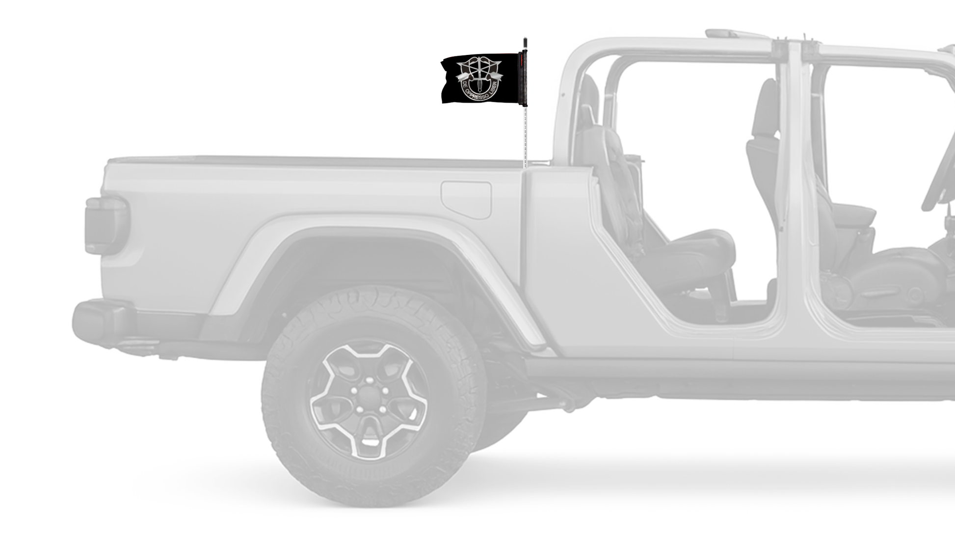 Show your style on every ride with the Special Forces 12"x18" Forever Wave Flag for Jeep Gladiator JT, proudly Made in the USA and designed to work exclusively with the Forever Wave interchangeable flag sleeve system. Built from premium, UV-resistant polyester, this durable double-sided flag is engineered to withstand sun, wind, rain, and off-road conditions while maintaining bold, vibrant color.