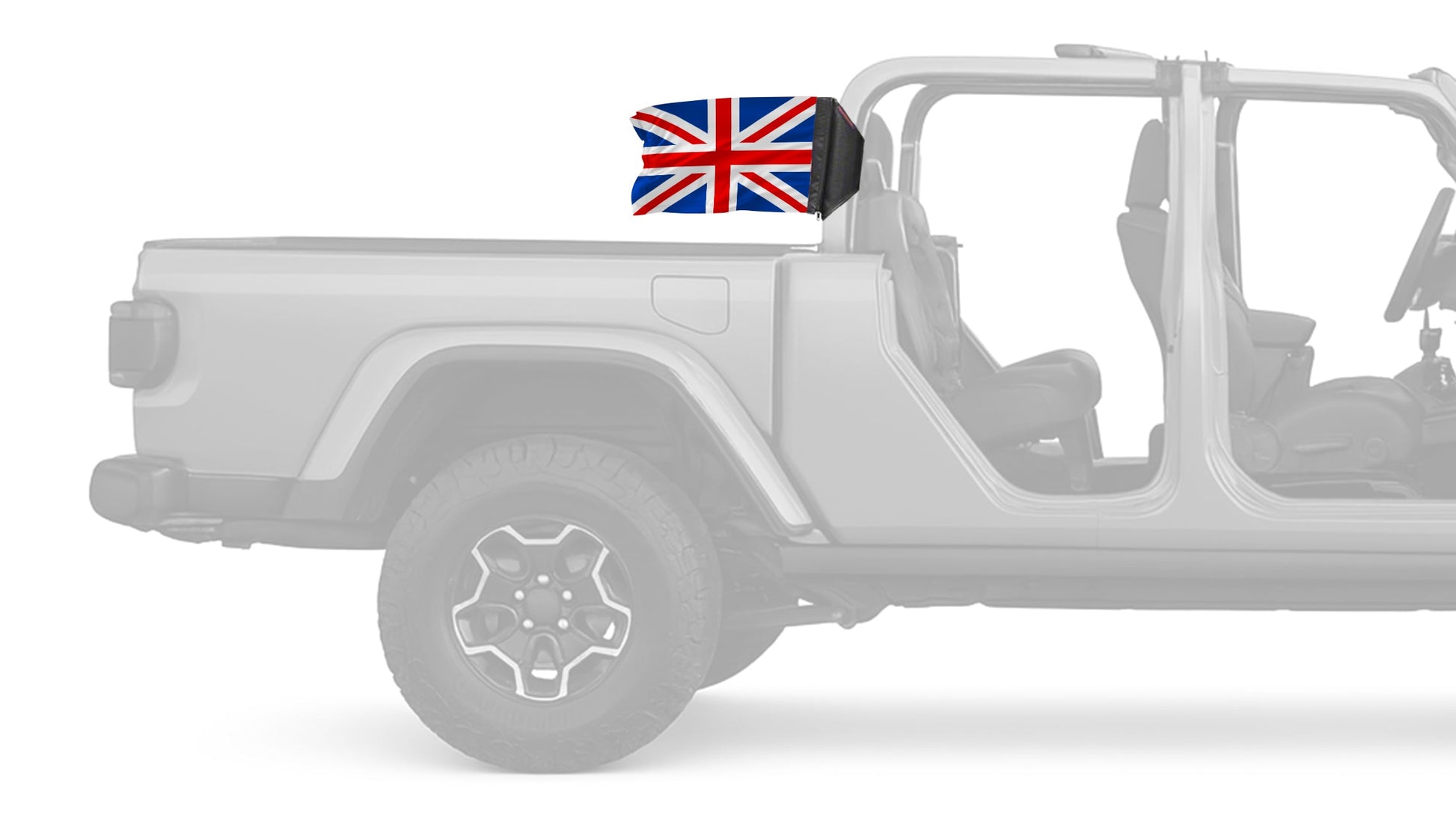 Show your style on every ride with the United Kingdom 12"x18" Forever Wave Flag for Jeep Gladiator JT, proudly Made in the USA and designed to work exclusively with the Forever Wave interchangeable flag sleeve system. Built from premium, UV-resistant polyester, this durable double-sided flag is engineered to withstand sun, wind, rain, and off-road conditions while maintaining bold, vibrant color.