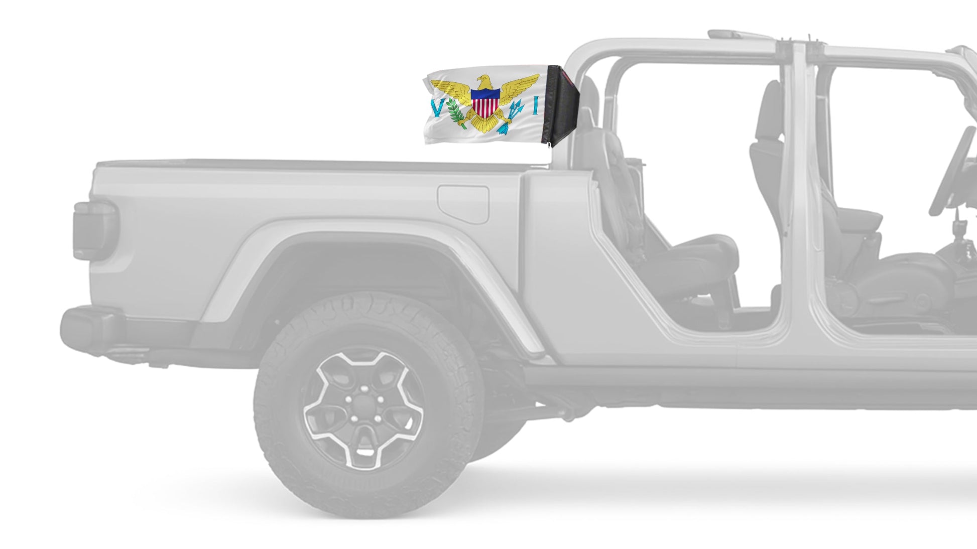 Show your style on every ride with the US Virgin Islands 12"x18" Forever Wave Flag for Jeep Gladiator JT, proudly Made in the USA and designed to work exclusively with the Forever Wave interchangeable flag sleeve system. Built from premium, UV-resistant polyester, this durable double-sided flag is engineered to withstand sun, wind, rain, and off-road conditions while maintaining bold, vibrant color.