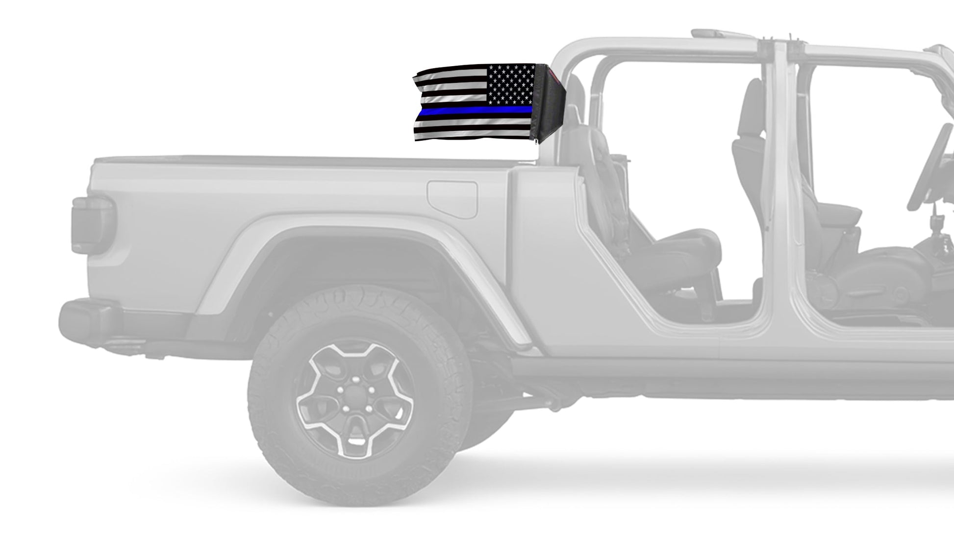 Show your style on every ride with the USA Subdued Thin Blue Line 12"x18" Forever Wave Flag for Jeep Gladiator JT, proudly Made in the USA and designed to work exclusively with the Forever Wave interchangeable flag sleeve system. Built from premium, UV-resistant polyester, this durable double-sided flag is engineered to withstand sun, wind, rain, and off-road conditions while maintaining bold, vibrant color.