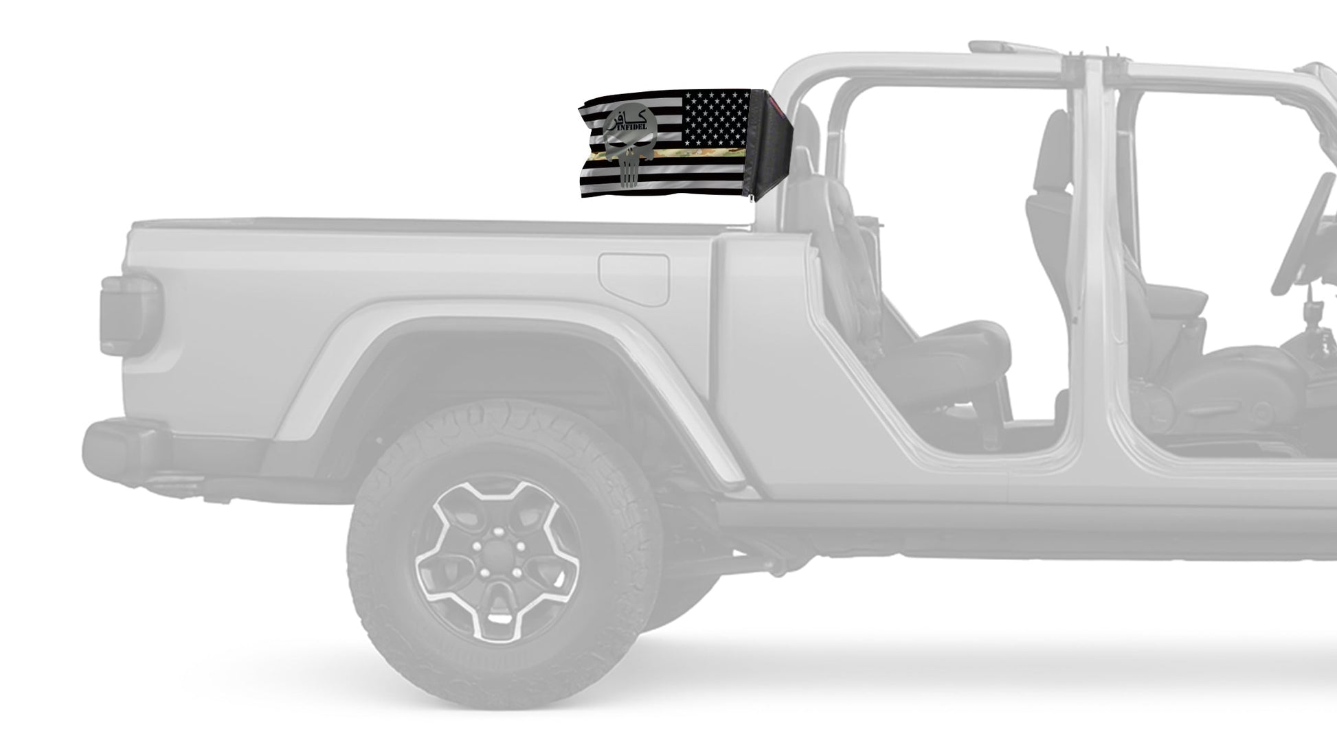 Show your style on every ride with the USA Subdued Thin Camo Line Infidel 12"x18" Forever Wave Flag for Jeep Gladiator JT, proudly Made in the USA and designed to work exclusively with the Forever Wave interchangeable flag sleeve system. Built from premium, UV-resistant polyester, this durable double-sided flag is engineered to withstand sun, wind, rain, and off-road conditions while maintaining bold, vibrant color.