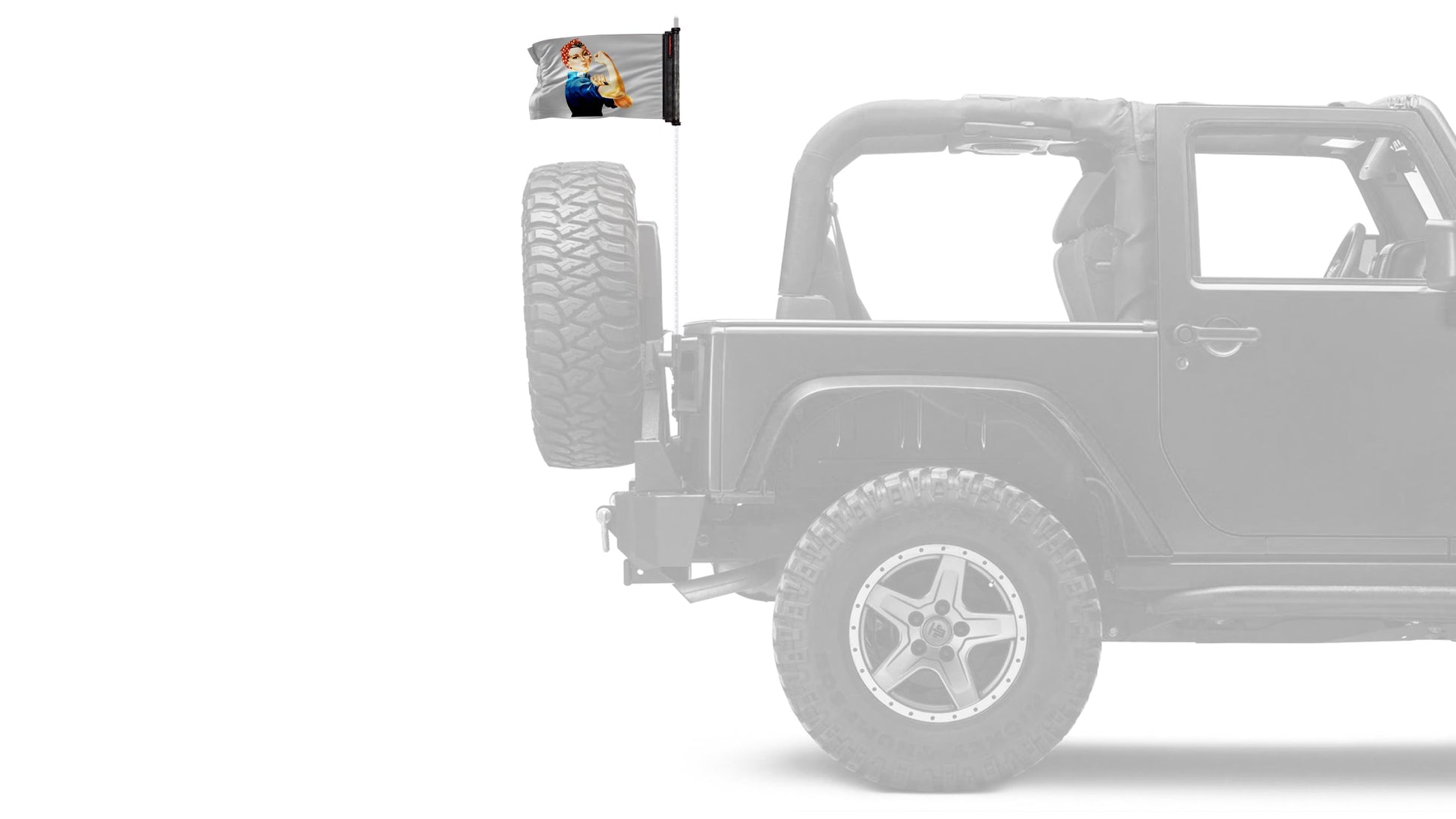 Show your style on every ride with the Rosie The Riveter 12"x18" Forever Wave Flag for Jeep Wrangler TJ 1996-2006, proudly Made in the USA and designed to work exclusively with the Forever Wave interchangeable Flag for Jeep Wrangler TJ 1996-2006 sleeve system. Built from premium, UV-resistant polyester, this durable double-sided Flag for Jeep Wrangler TJ 1996-2006 is engineered to withstand sun, wind, rain, and off-road conditions while maintaining bold, vibrant color.