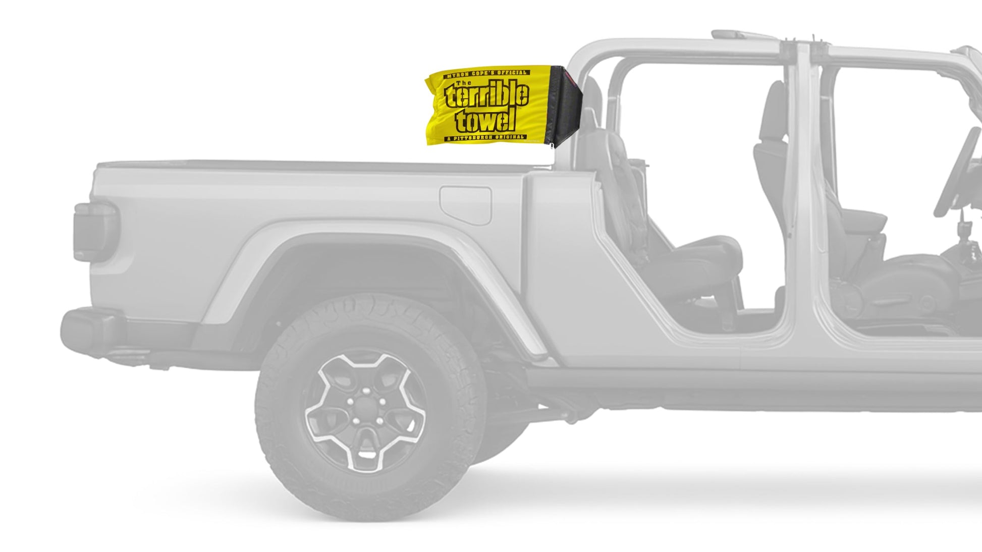 Show your style on every ride with the Pittsburgh Steelers Terrible Towel 11"x17" Forever Wave Flag for Jeep Gladiator JT, proudly Made in the USA and designed to work exclusively with the Forever Wave interchangeable flag sleeve system. Built from premium, UV-resistant polyester, this durable double-sided flag is engineered to withstand sun, wind, rain, and off-road conditions while maintaining bold, vibrant color.