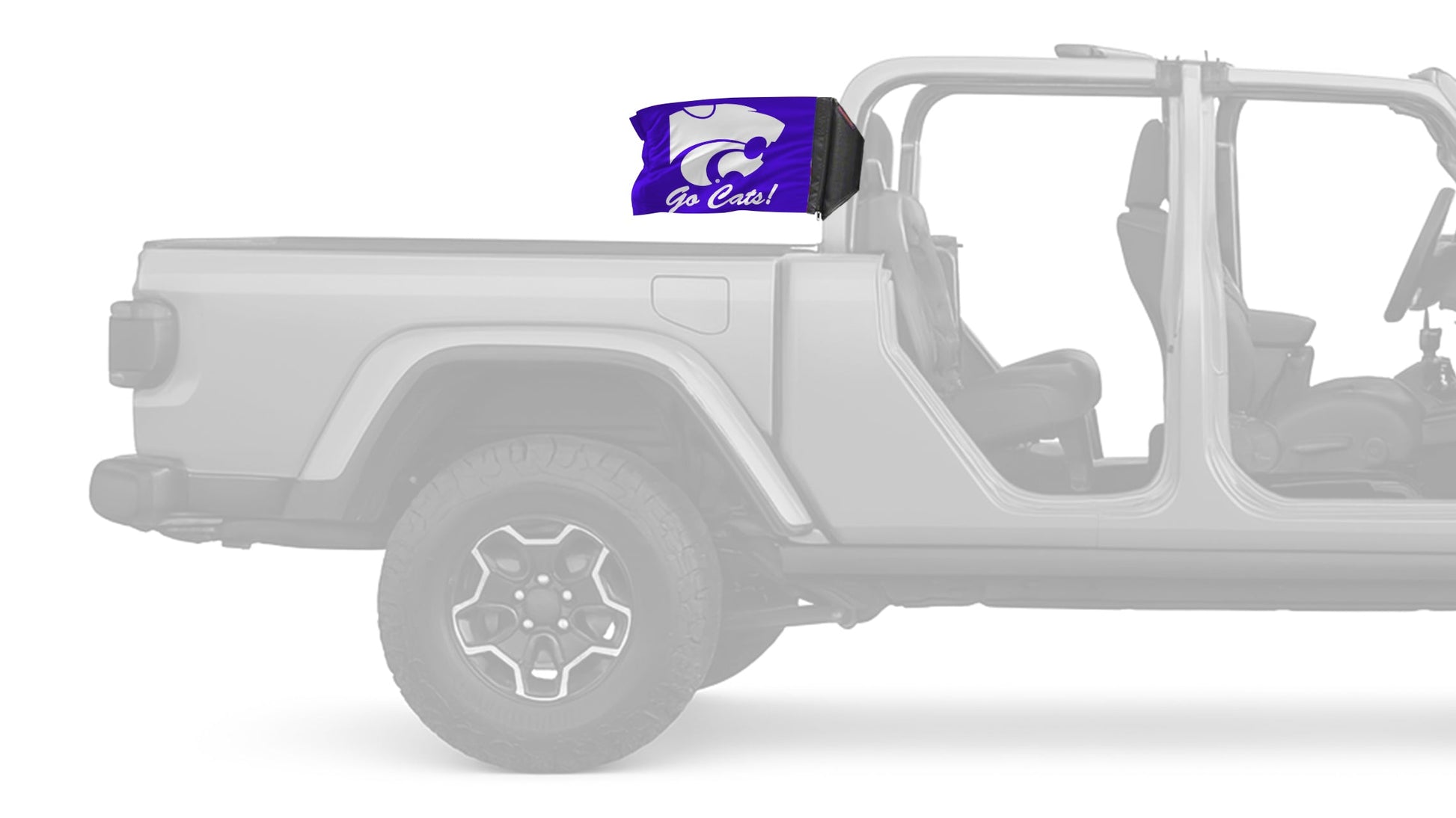 Show your style on every ride with the Kansas State 11"x17" Forever Wave Flag for Jeep Gladiator JT, proudly Made in the USA and designed to work exclusively with the Forever Wave interchangeable flag sleeve system. Built from premium, UV-resistant polyester, this durable double-sided flag is engineered to withstand sun, wind, rain, and off-road conditions while maintaining bold, vibrant color.