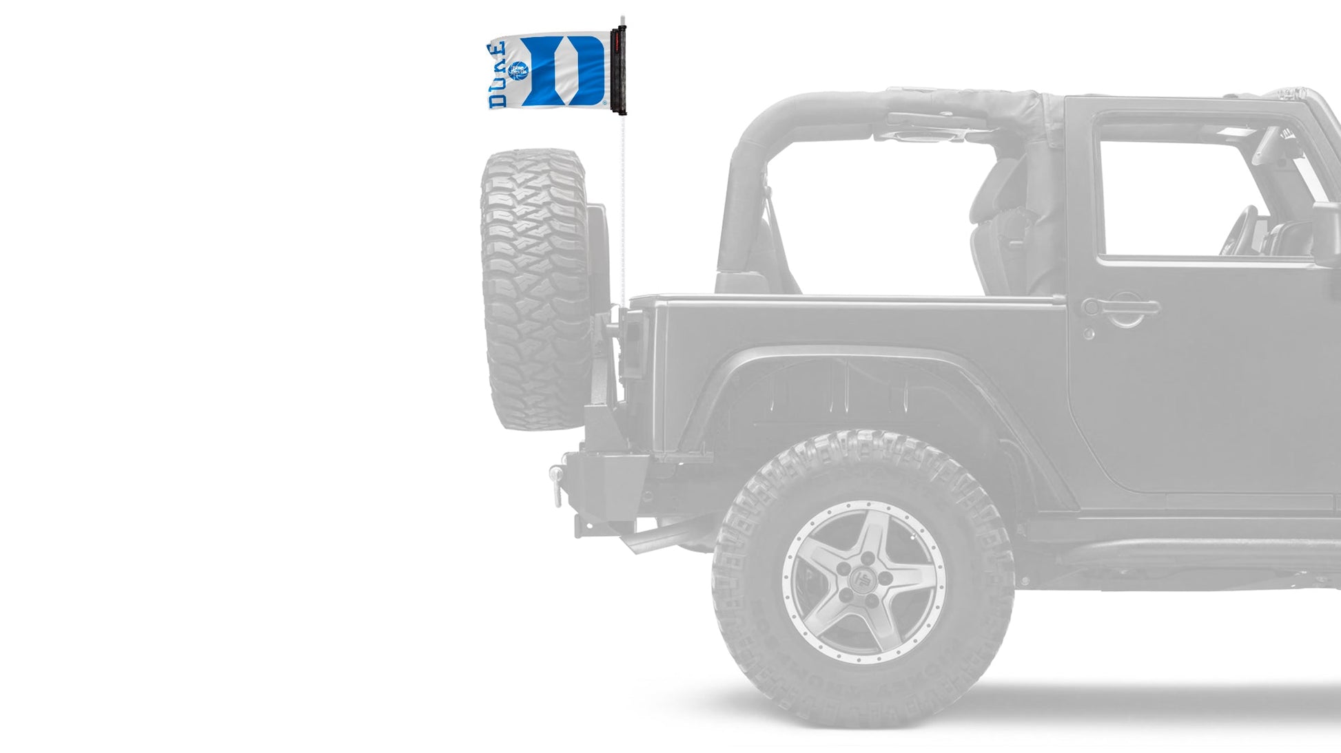 Show your style on every ride with the Duke 11"x17" Forever Wave Flag for Jeep Wrangler JL 2-Door, proudly Made in the USA and designed to work exclusively with the Forever Wave interchangeable flag sleeve system. Built from premium, UV-resistant polyester, this durable double-sided flag is engineered to withstand sun, wind, rain, and off-road conditions while maintaining bold, vibrant color.