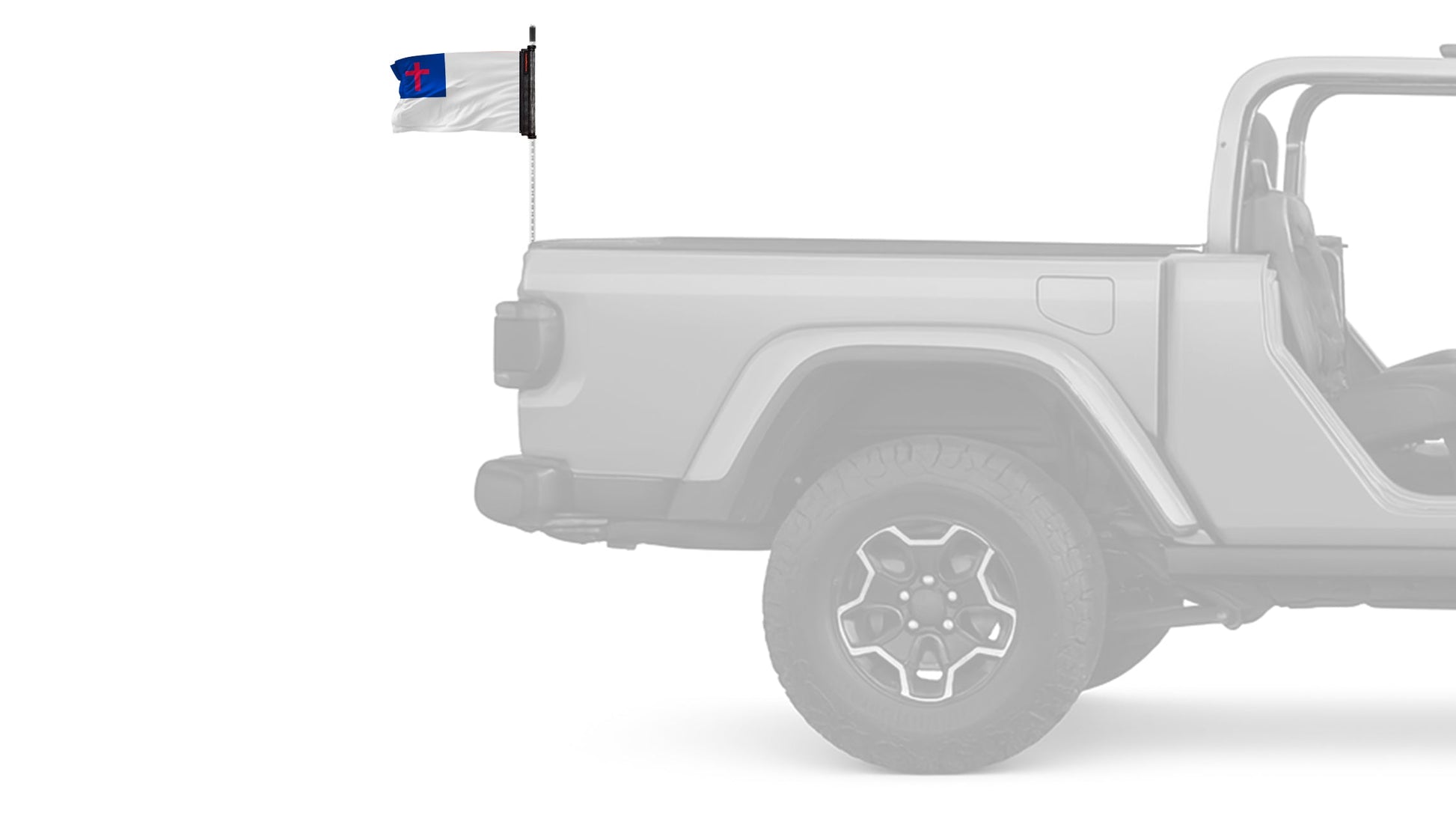 Show your style on every ride with the Christian 12"x18" Forever Wave Flag for Jeep Wrangler JKU 4-Door 2007-2018, proudly Made in the USA and designed to work exclusively with the Forever Wave interchangeable Flag for Jeep Wrangler JKU 4-Door 2007-2018 sleeve system. Built from premium, UV-resistant polyester, this durable double-sided Flag for Jeep Wrangler JKU 4-Door 2007-2018 is engineered to withstand sun, wind, rain, and off-road conditions while maintaining bold, vibrant color.