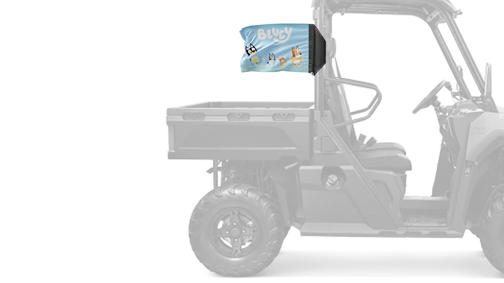 Show your style on every ride with the Bluey 12"x18" Forever Wave Flag for UTVs, proudly Made in the USA and designed to work exclusively with the Forever Wave interchangeable Flag for UTVs sleeve system. Built from premium, UV-resistant polyester, this durable double-sided Flag for UTVs is engineered to withstand sun, wind, rain, and off-road conditions while maintaining bold, vibrant color.