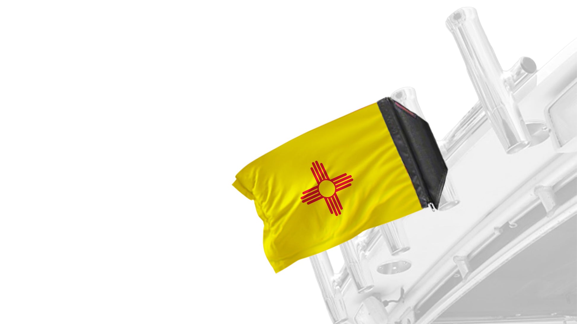 Show your style on every ride with the State Of New Mexico 12"x18" Forever Wave Flag for Boats, proudly Made in the USA and designed to work exclusively with the Forever Wave interchangeable Flag for Boats sleeve system. Built from premium, UV-resistant polyester, this durable double-sided Flag for Boats is engineered to withstand sun, wind, rain, and off-road conditions while maintaining bold, vibrant color.