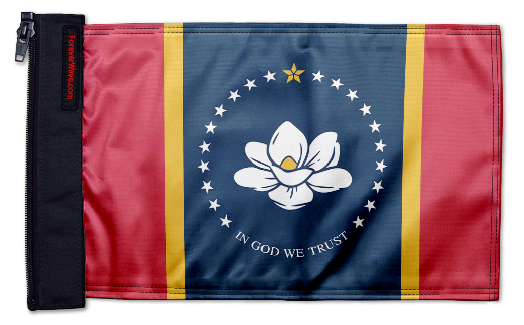 Show your style on every ride with the State Of Mississippi Old Style 12"x18" Forever Wave Flag for Jeep Wrangler JKU 4-Door 2007-2018, proudly Made in the USA and designed to work exclusively with the Forever Wave interchangeable Flag for Jeep Wrangler JKU 4-Door 2007-2018 sleeve system. Built from premium, UV-resistant polyester, this durable double-sided Flag for Jeep Wrangler JKU 4-Door 2007-2018 is engineered to withstand sun, wind, rain, and off-road conditions while maintaining bold, vibrant color.