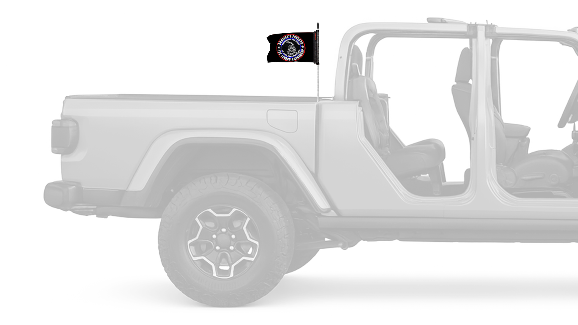 Show your style on every ride with the 2nd Amendment 12"x18" Forever Wave Flag for Jeep Gladiator JT, proudly Made in the USA and designed to work exclusively with the Forever Wave interchangeable flag sleeve system. Built from premium, UV-resistant polyester, this durable double-sided flag is engineered to withstand sun, wind, rain, and off-road conditions while maintaining bold, vibrant color.
